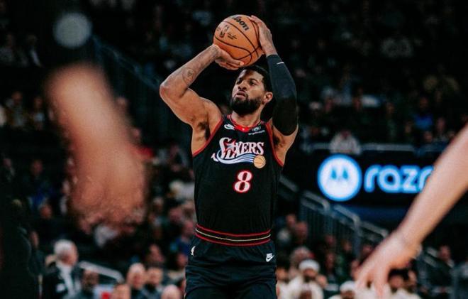 76人加时123-114雄鹿,马克西54+5+9,乔治21分,罗林斯空砍32+6+14